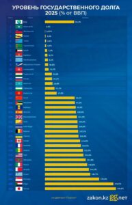 Казахстан продолжает входить в число стран с минимальной долговой нагрузкой. Уровень государственного долга РК...